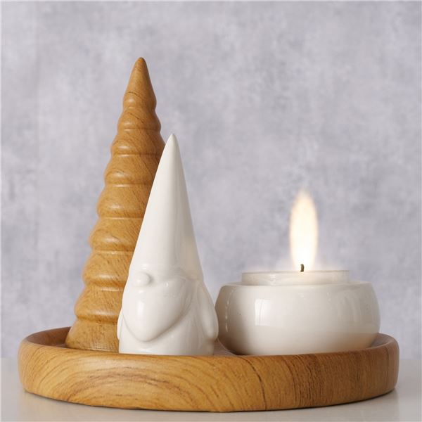 Plongez votre intérieur dans une ambiance de Noël douce et authentique avec ce charmant bougeoir en céramique. Composé d'un plateau imitation bois, d'un sapin et d'un petit père Noël, il recrée un mini-village féerique. Installez une bougie chauffe-plat (non livrée) dans sa coupelle blanche et laissez la lumière douce et dansante illuminer vos soirées. Cet objet décoratif est une invitation à la rêverie et à la douceur des fêtes de fin d'année, idéal pour orner un coin de votre salon, un meuble d'entrée ou pour décorer la table d'un repas de Noël.