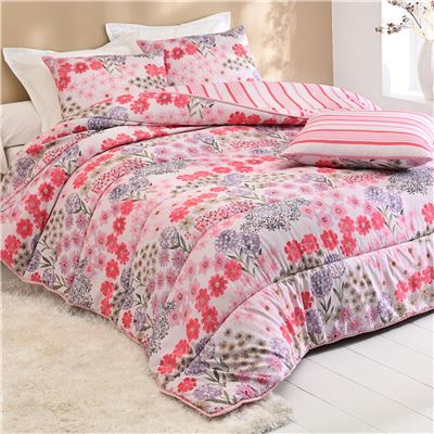 Couette DÉCO DOUBLE FACE motif fleurs/rayures - Becquet Création - Légère ou chaude