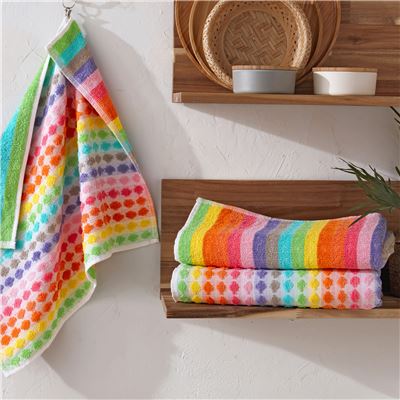 Essuie-mains éponge motif pois et rayures - Lot de 3 ou de 6