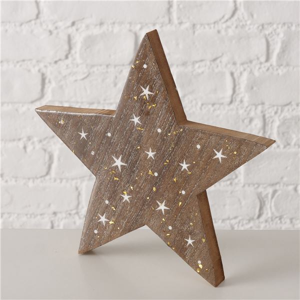 Laissez la magie de Noël s'installer chez vous avec cette étoile décorative en MDF laqué. Digne des plus belles nuits étoilées, elle brille de mille feux grâce à ses touches de doré et ses étoiles blanches parsemées. À la fois simple et sophistiquée, cette grande étoile en bois apporte une touche de féerie et d'élégance à la déco des fêtes. Sur un rebord de fenêtre, sur la table, la cheminée elle est comme la promesse de moments enchantés.
