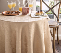 Nappes damassées unies ou nappes jacquard fantaisie, des nappes de belle qualité, parfaites pour les tables de réception comme pour les tables familiales «endimanchées».