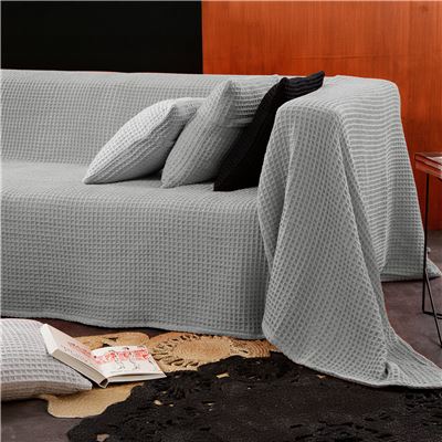 Sublimez votre salon avec ce jeté de canapé en nid-d'abeilles qui joue la carte de la douceur absolue. Conçu dans un coton bien épais, il présente un tissage fantaisie alvéolé au relief original et un moelleux incomparable pour vos moments de détente. Grâce à sa finition stone-washed (un léger effet délavé très actuel), ce jeté de canapé apporte une touche de modernité brute qui s'accorde avec tous les styles de décoration d'intérieur. Polyvalent, il s'utilise aussi bien en jeté de canapé qu'en bout de lit élégant.