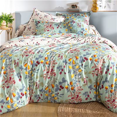 Linge de lit en percale motif fruits : ambiance gourmande pour des réveils joyeux !
