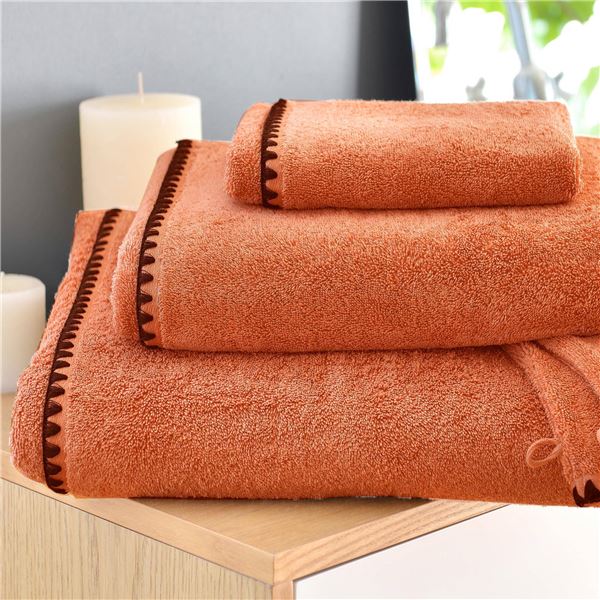Coloris très actuels pour cette gamme de serviettes éponge divinement moelleuses et absorbantes. On aime aussi leur finition originale par large point cavalier. Déclinée en serviette de toilette, drap de bain, gant et serviette d'invité.