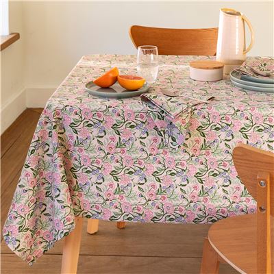 Rien de tel qu'un bel imprimé pour transformer l'atmosphère d'une pièce. Cette nappe se pare d'un motif fleuri délicat, aux tonalités pastel de rose, mauve et bleu sur un feuillage vert tendre, pour une ambiance bucolique et apaisante. Pour un petit-déjeuner ensoleillé ou un grand dîner, elle apporte une touche de charme naturel à chaque instant. Et parce que nous aimons les beaux tissus qui durent, cette nappe est imprimée sur une toile sergée 100% coton, l'assurance d'une excellente robustesse, d'un tombé impeccable sur votre table, et d'un toucher agréable pour accompagner tous vos repas.