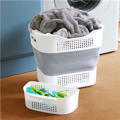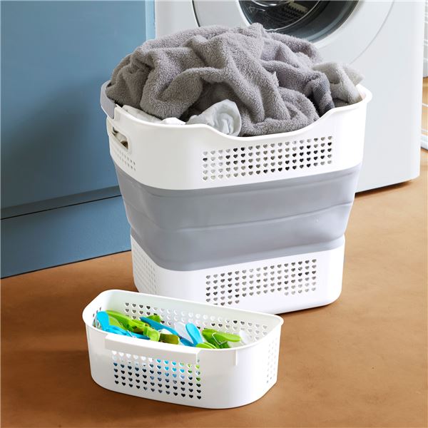 Optimisez chaque centimètre de votre buanderie avec ce panier à linge pliable au design intelligent. Grâce à sa partie souple grise qui se replie en accordéon, il passe d'une hauteur de 35,5 cm à seulement 12 cm en un clin d'œil, se glissant facilement entre deux meubles ou derrière une porte. Conçu en plastique et caoutchouc résistants, il est accompagné d'un panier à pinces à linge clipsable, vous permettant de garder vos accessoires à portée de main lors de l'étendage. C'est la solution idéale pour allier grande capacité de rangement et encombrement minimal après usage.