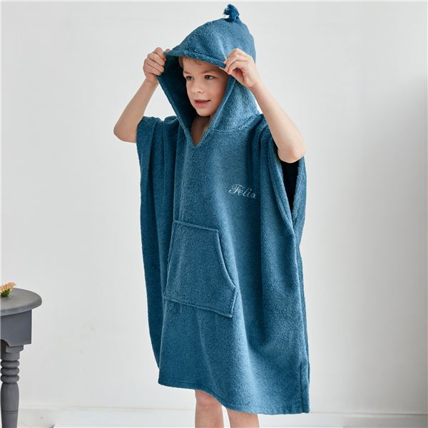 L'accessoire idéal pour bien sécher les enfants après la piscine ou le bain ! On adore la coupe poncho qui s'enfile facilement même par les plus petits. Avec son encolure tunisienne et sa fantaisie de pompon sur la capuche, ce poncho de bain en éponge s'affirme aussi comme vêtement d'intérieur ! Ce poncho est muni d'une poche kangourou afin d'y glisser des petits secrets. On aime l'esprit poncho : autant pour les filles que pour les garçons ! Un poncho que vous trouverez aussi en version personnalisable pour y faire broder le prénom, le surnom, un petit mot que vous choisirez pour en faire un poncho unique !