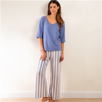 Pyjama femme jersey rayures marine - BECQUET CRÉATION