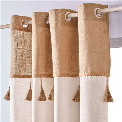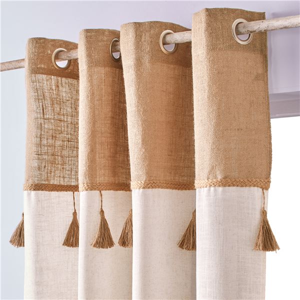 Invitez l'esprit nature dans votre intérieur avec ce rideau au charme artisanal. Son grand parement en jute est magnifiquement rehaussé d'un galon tressé et de pompons, apportant relief et caractère à la décoration de votre pièce. Le corps de ce rideau prêt-à-poser, mêlant lin et polyester, assure un tombé souple et élégant. C'est l'accessoire idéal pour une ambiance cocooning, chic et authentique.