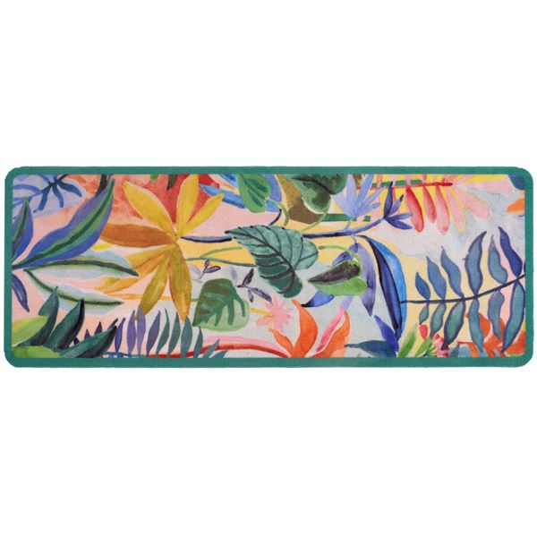 Laissez-vous séduire par les couleurs de ce tapis de cuisine aux motifs de fleurs exotiques. Son décor aux couleurs vibrantes apporte une dose de fantaisie et de chaleur à votre intérieur. Véritable rempart contre les sols glissants, ce tapis assure votre sécurité devant votre évier ou dans votre entrée grâce à sa semelle technique antidérapante.
